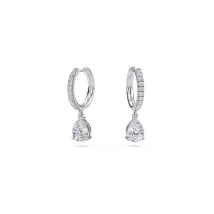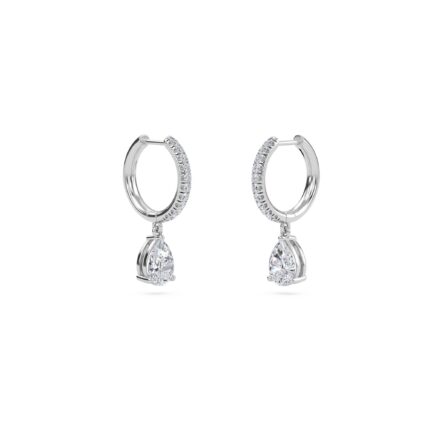 1.40 Carat Pear Cut Diamond Drop Hoop Earrings with Round Side Stones – Elegant Fine Jewelry