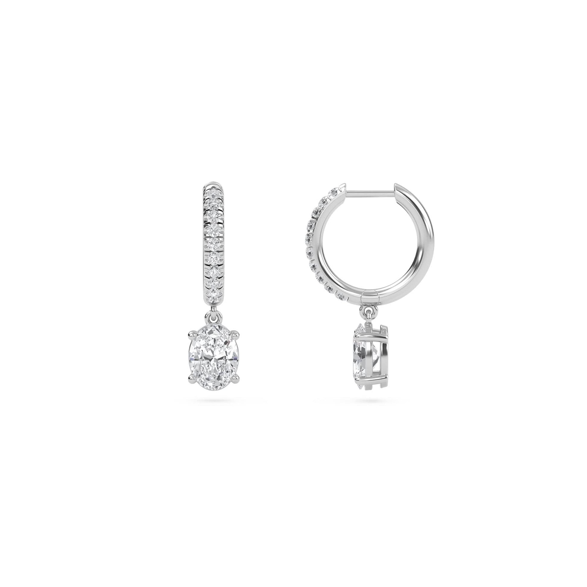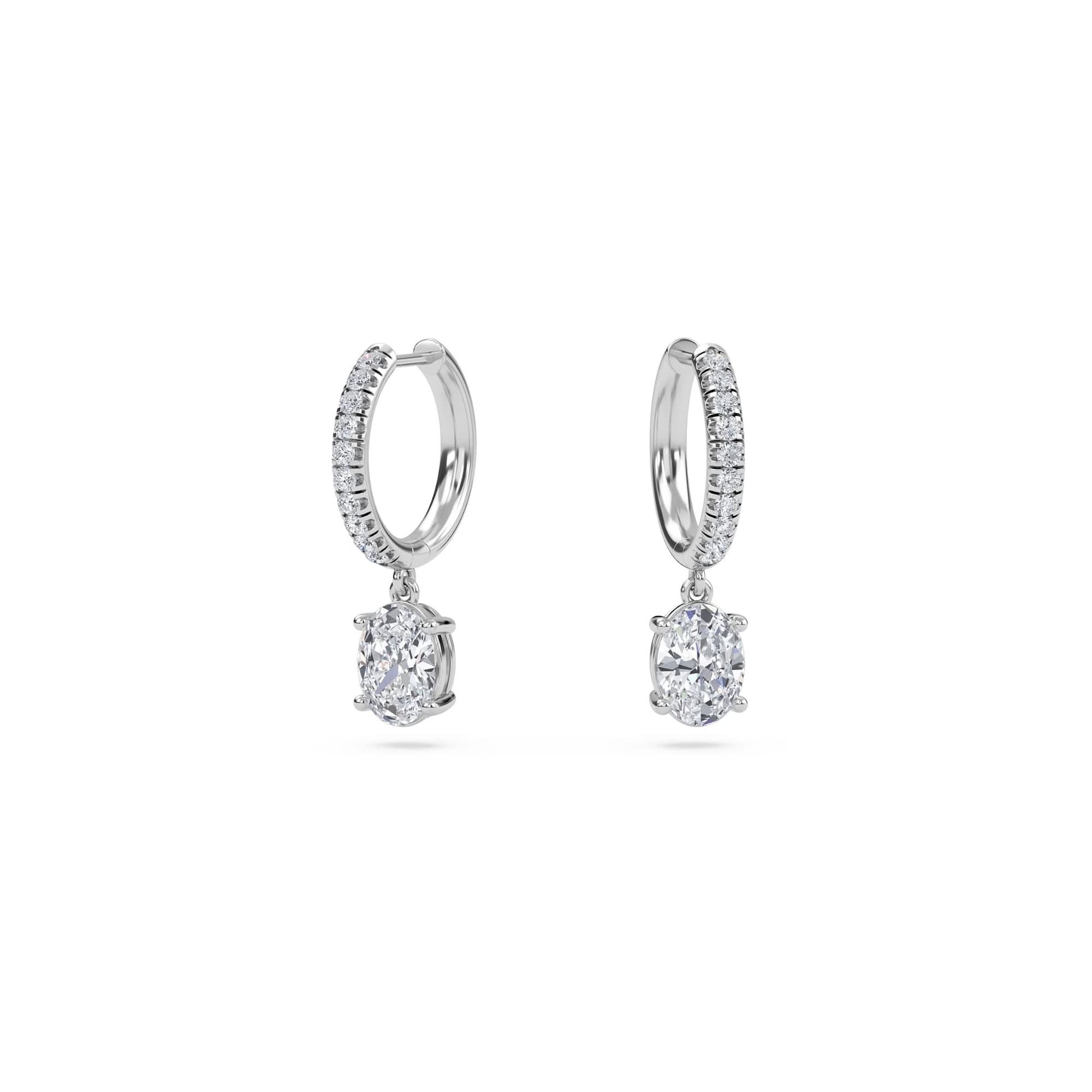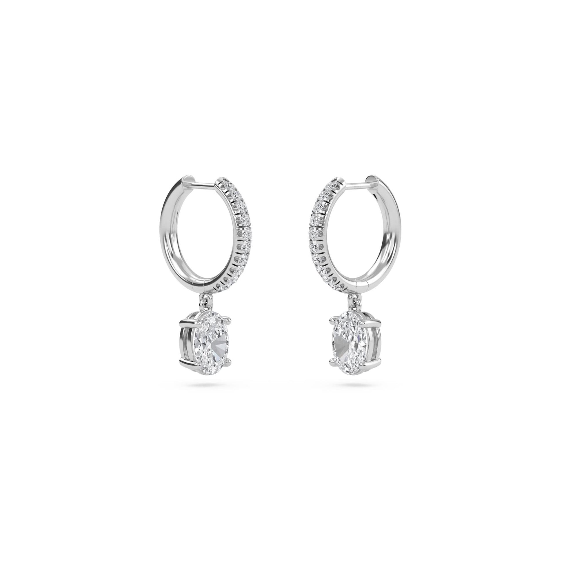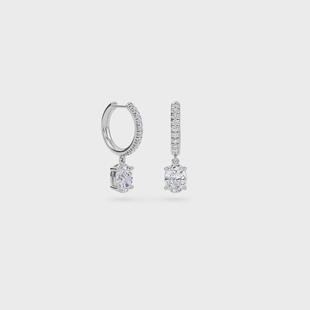 1.40 Carat Oval Cut Diamond Drop Hoop Earrings with Round Side Stones – Elegant Fine Jewelry