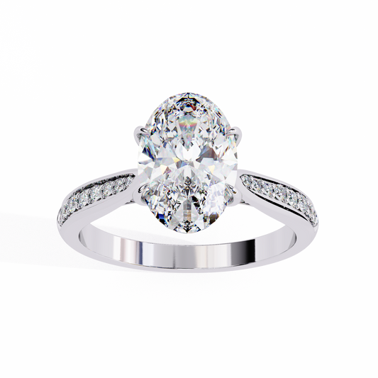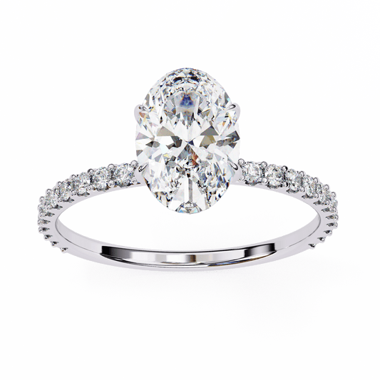 2.34 Carat Oval Cut Hidden Halo Diamond Engagement Ring with Round Side Stones – Elegant Bridal Jewelry