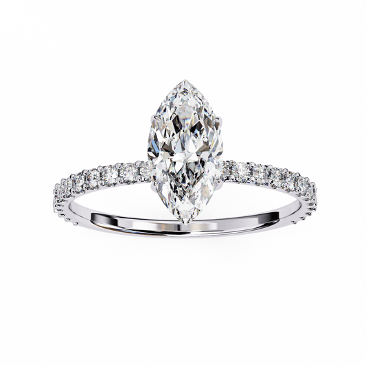 1.36 Carat Marquise Cut Hidden Halo Diamond Engagement Ring with Round Side Stones – Elegant Bridal Ring