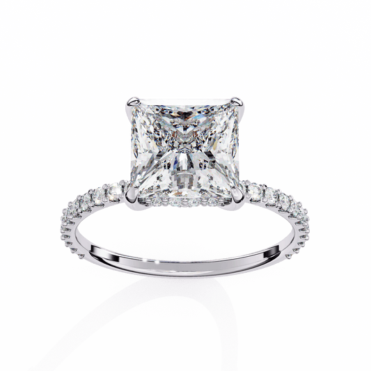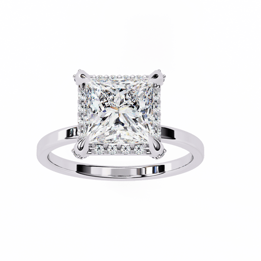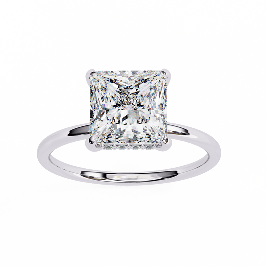 2.16 Carat Princess Cut Hidden Halo Diamond Engagement Ring – Elegant Bridal Jewelry