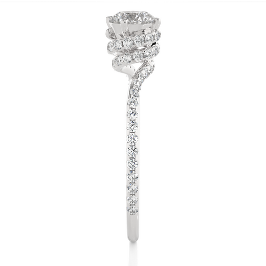 1.36 Carat Round Cut Hidden Halo Diamond Engagement Ring with Round Side Stones – Elegant Bridal Ring