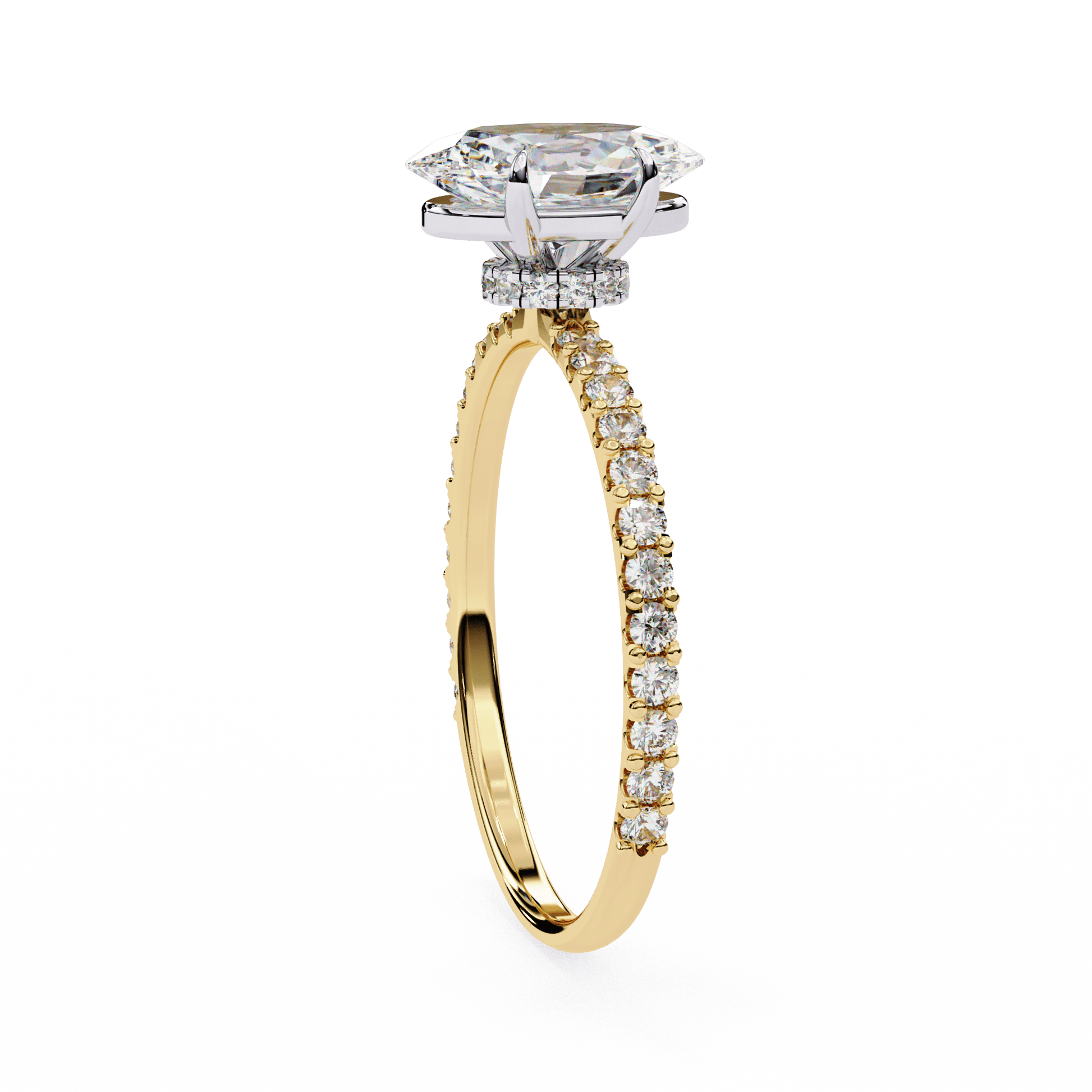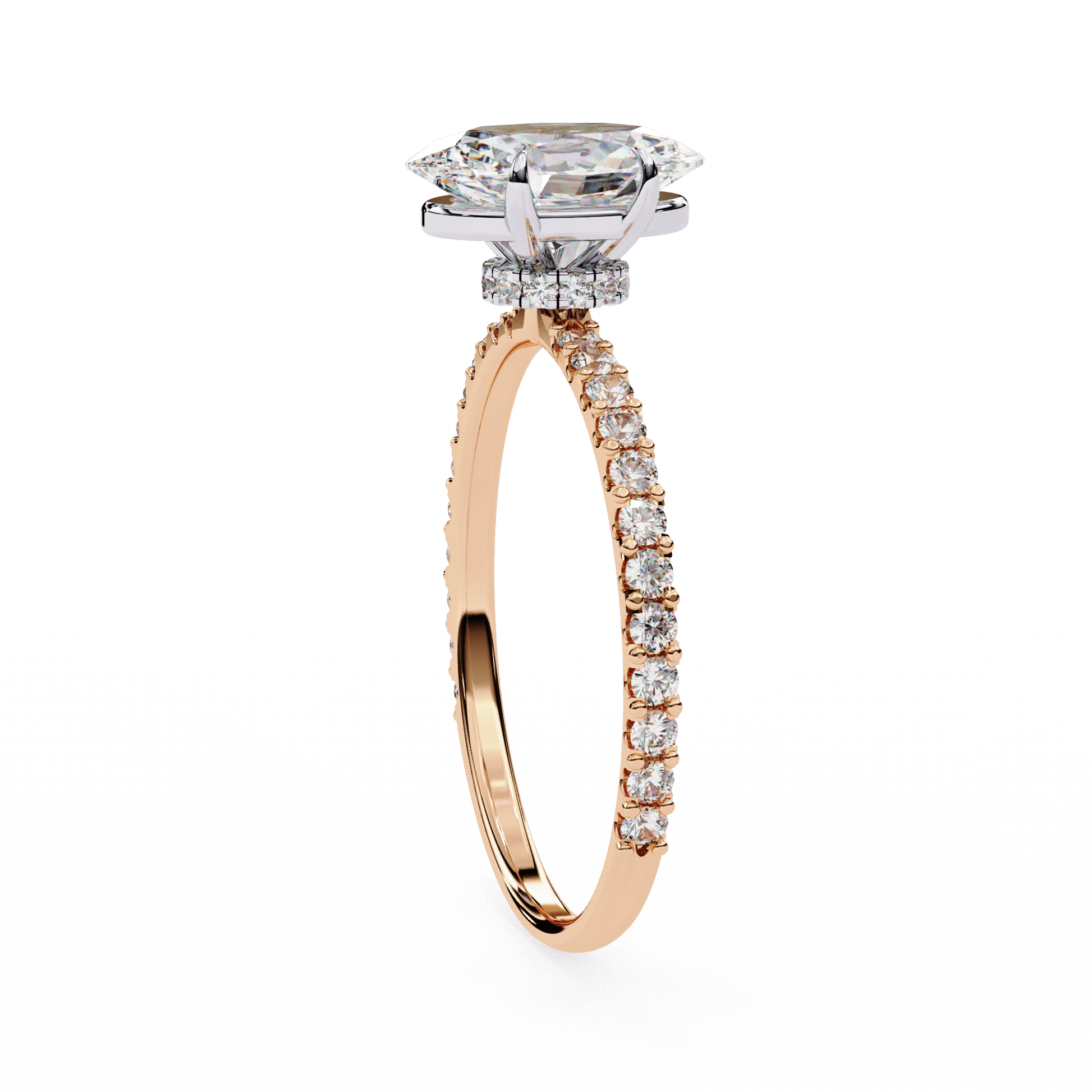 We offer complete customization โ choose your diamond shape, quality, size, metal color, engraving, or even add a hidden halo or initials.