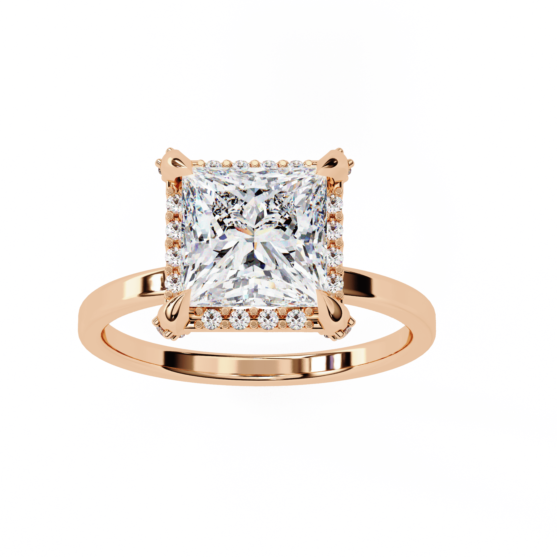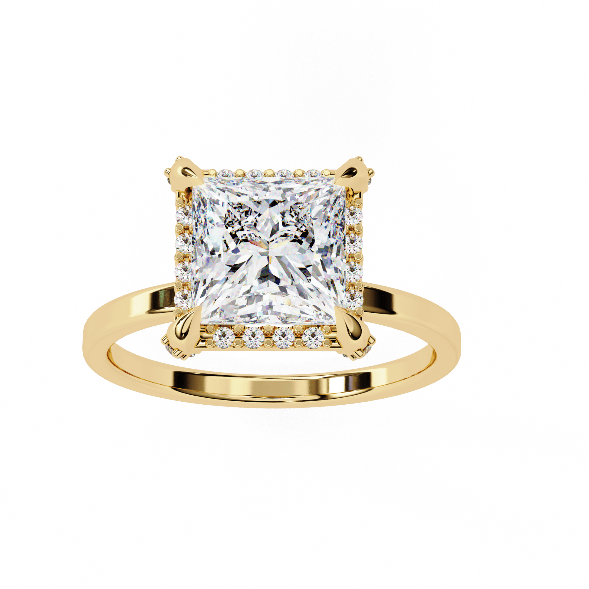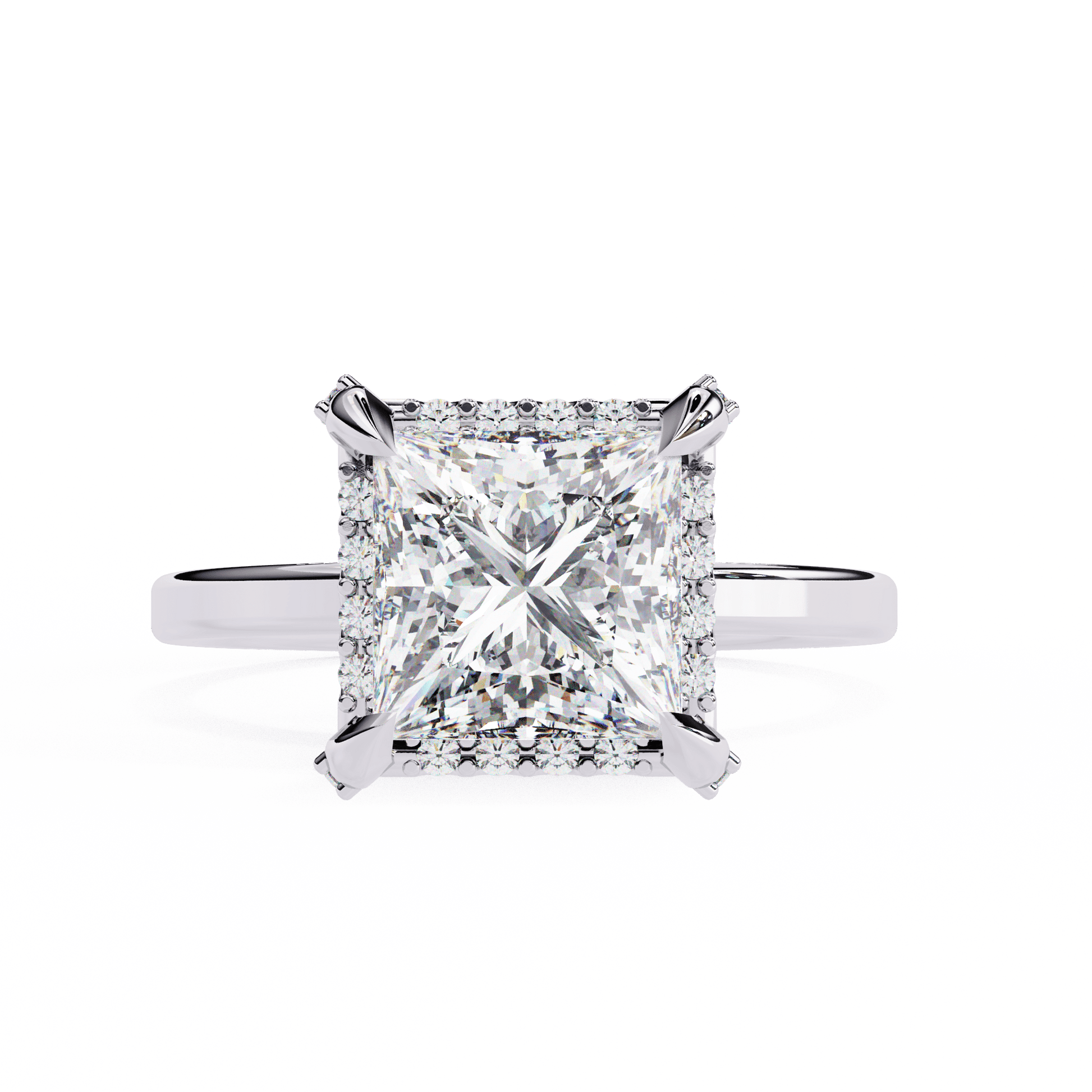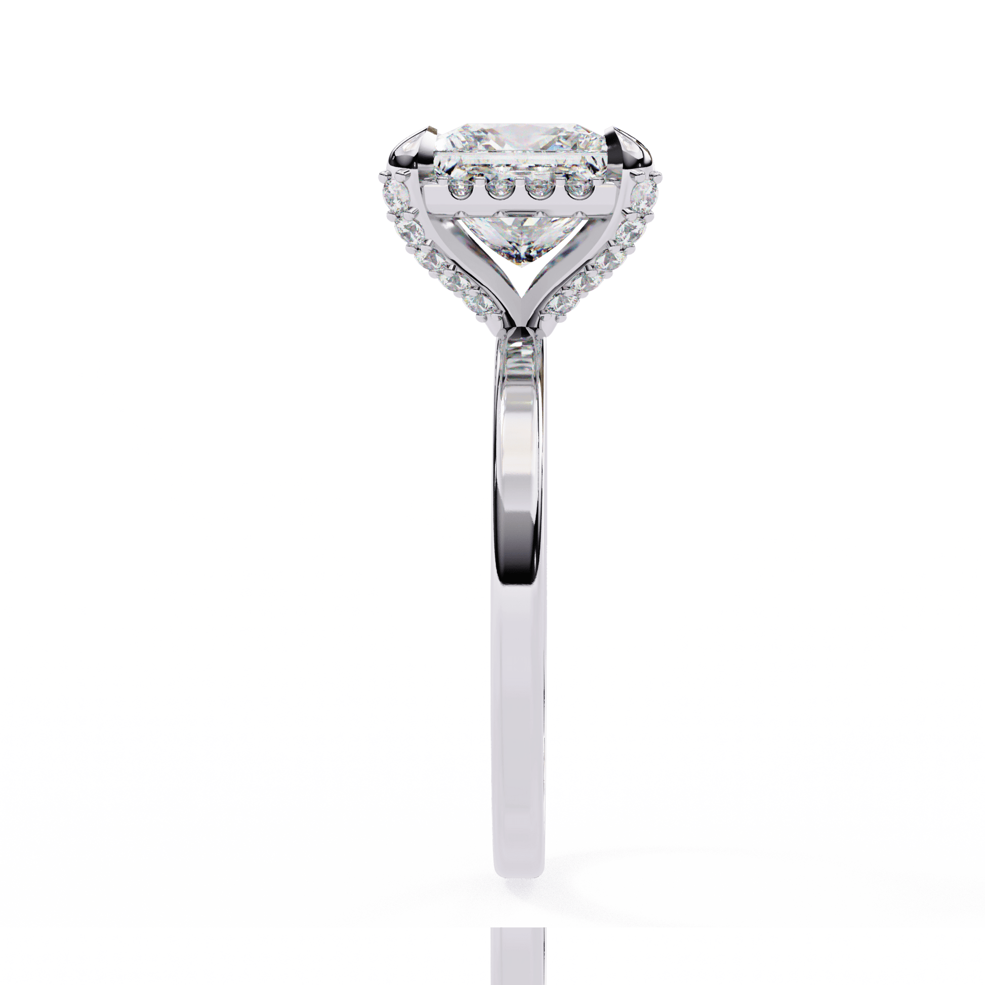 2.36 Carat Princess Cut Hidden Halo Engagement Ring with Round Side Stones – Luxury Diamond Jewelry