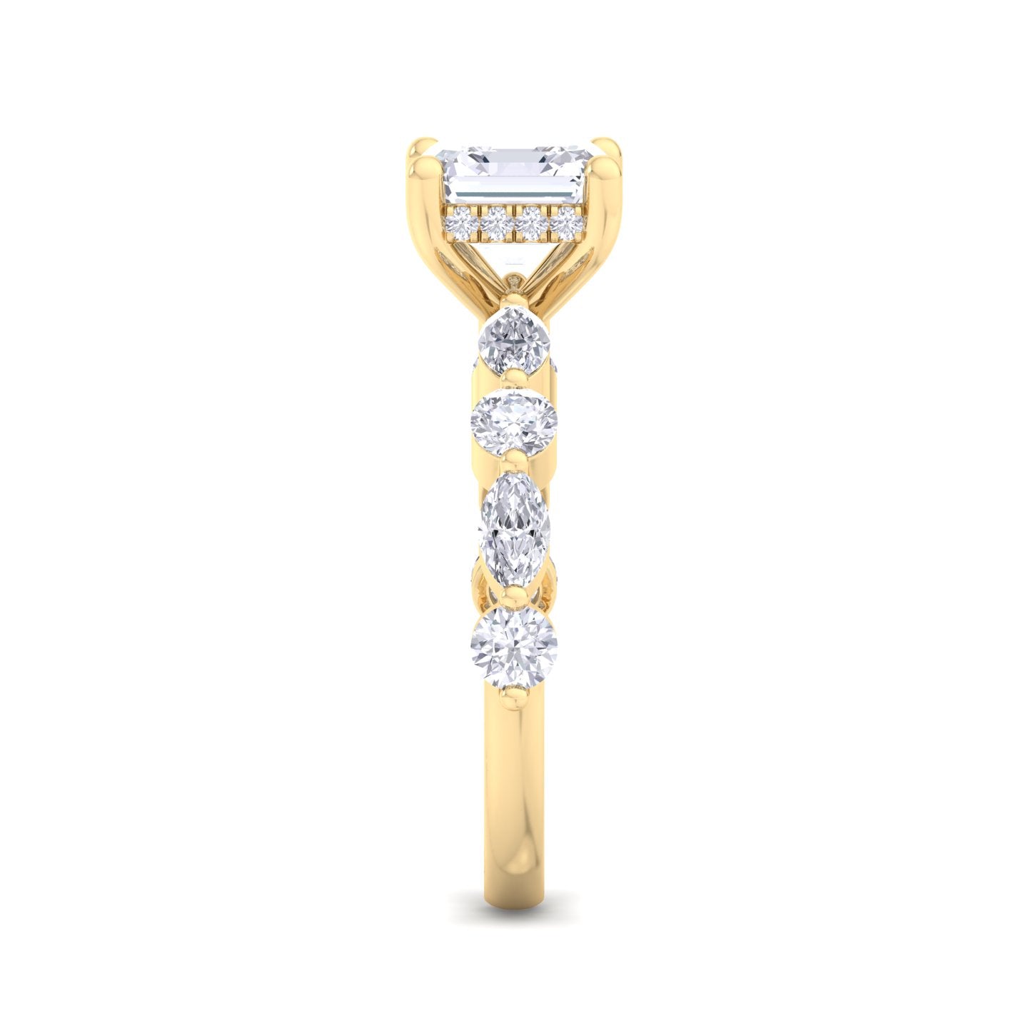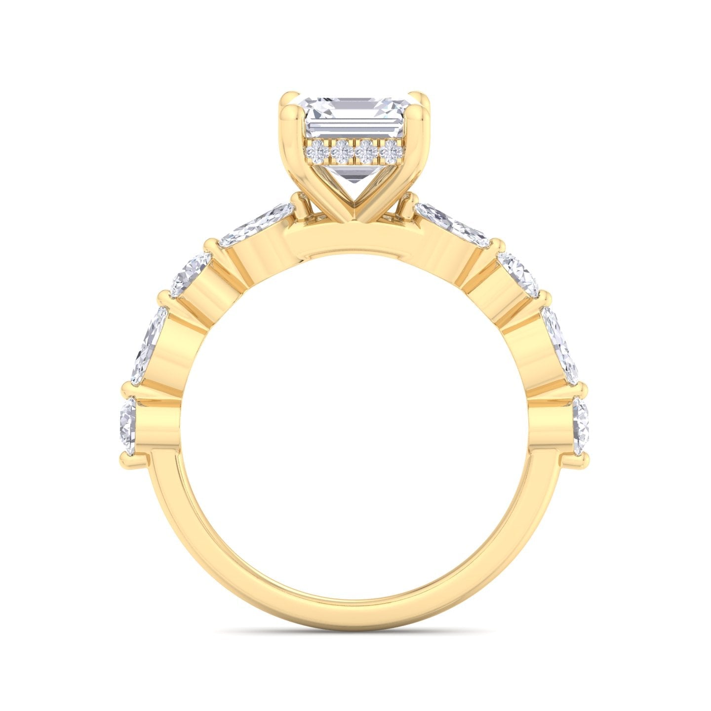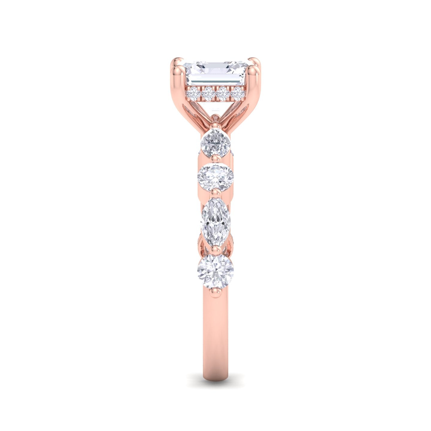 We offer complete customization โ choose your diamond shape, quality, size, metal color, engraving, or even add a hidden halo or initials.