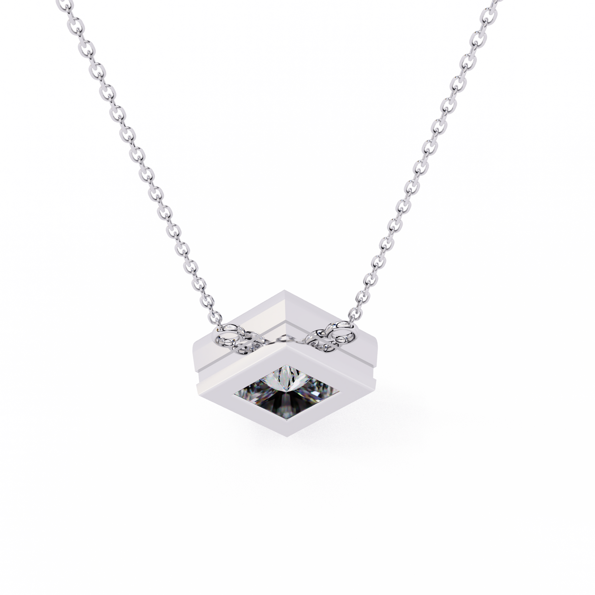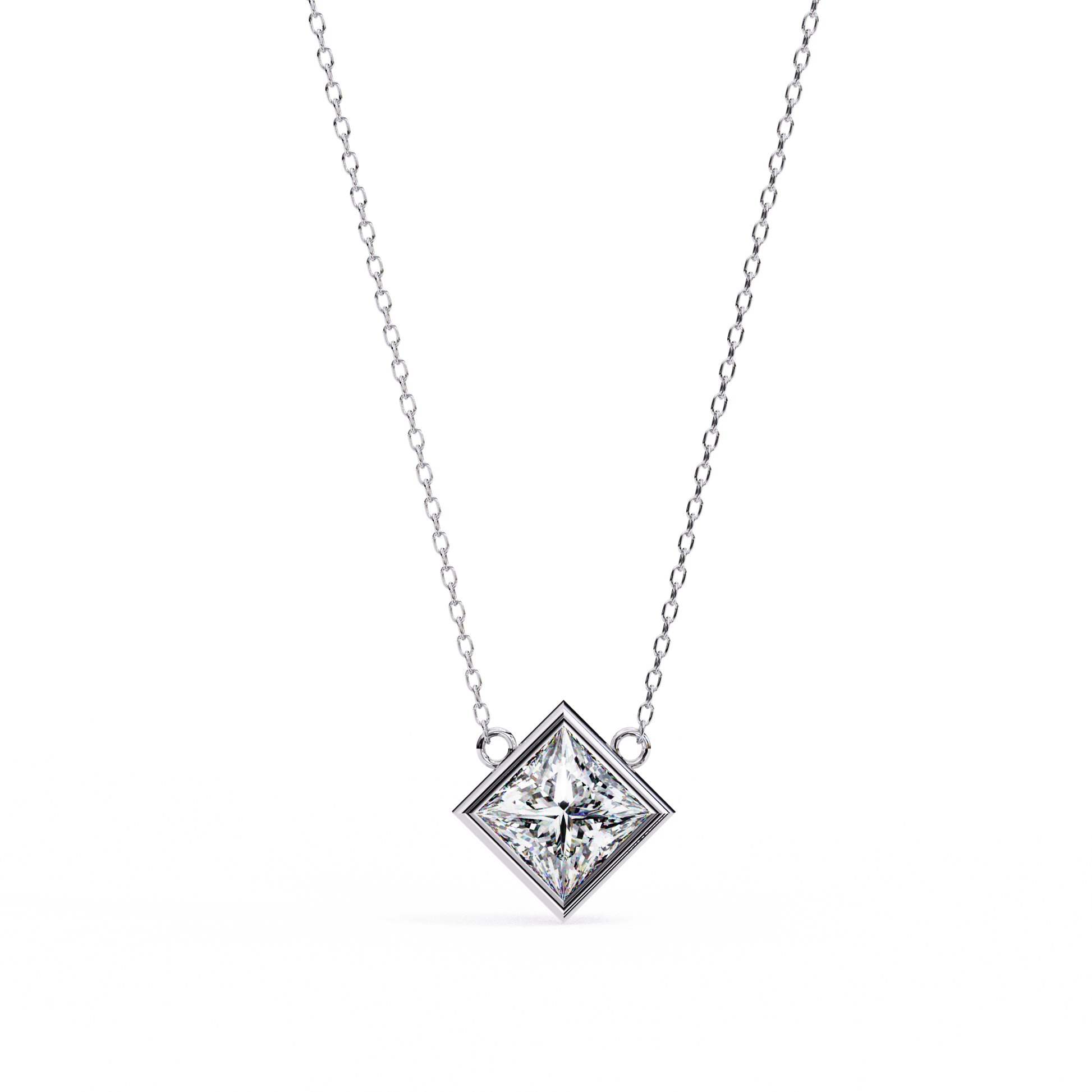 2.00 Carat Princess Cut Diamond Solitaire Pendant Necklace - Classic Fine Jewelry