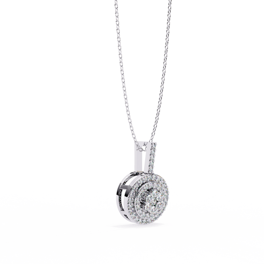 Round Cut Cluster Diamond Pendant Necklace with Double Halo – Elegant Fine Jewelry