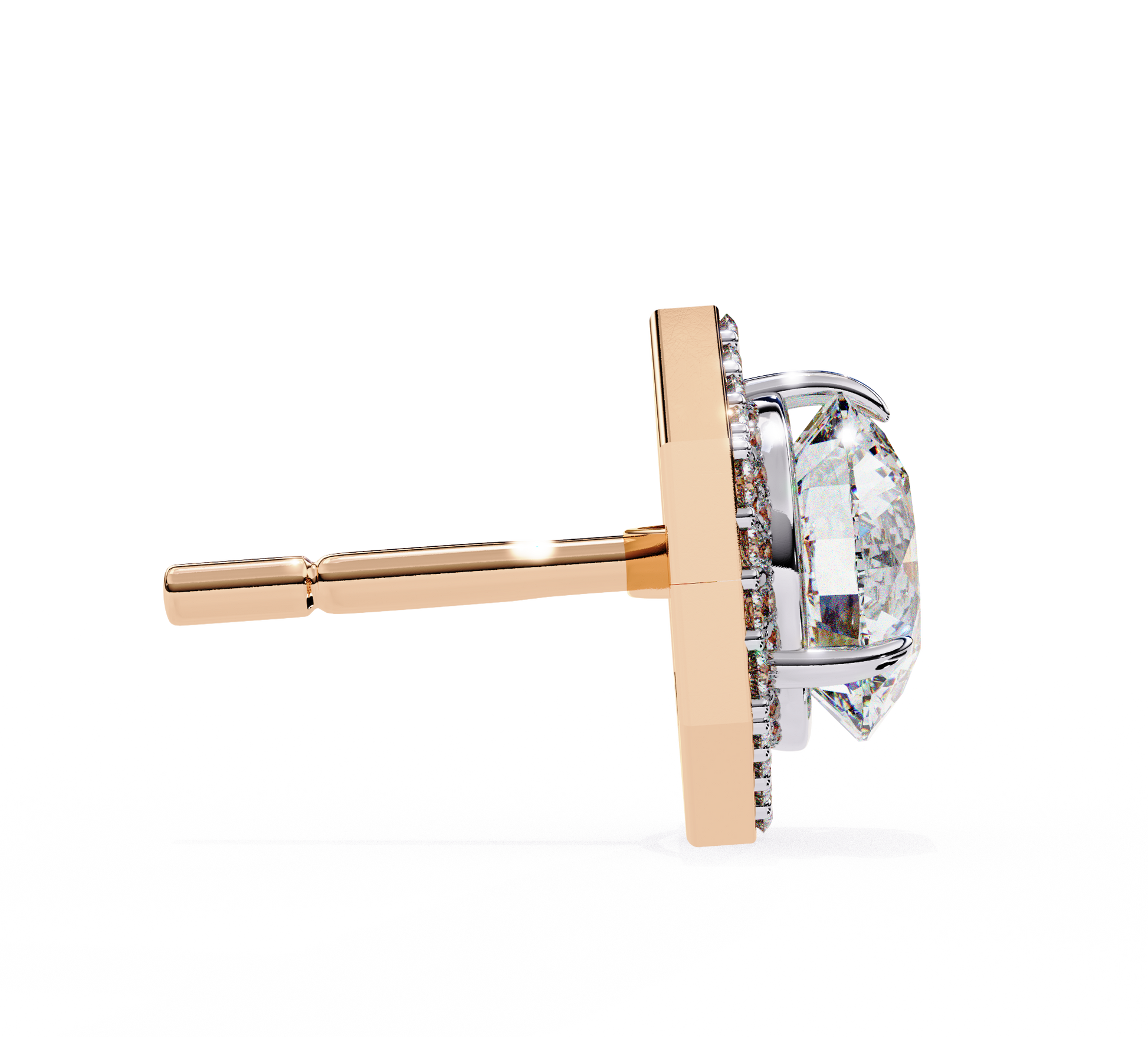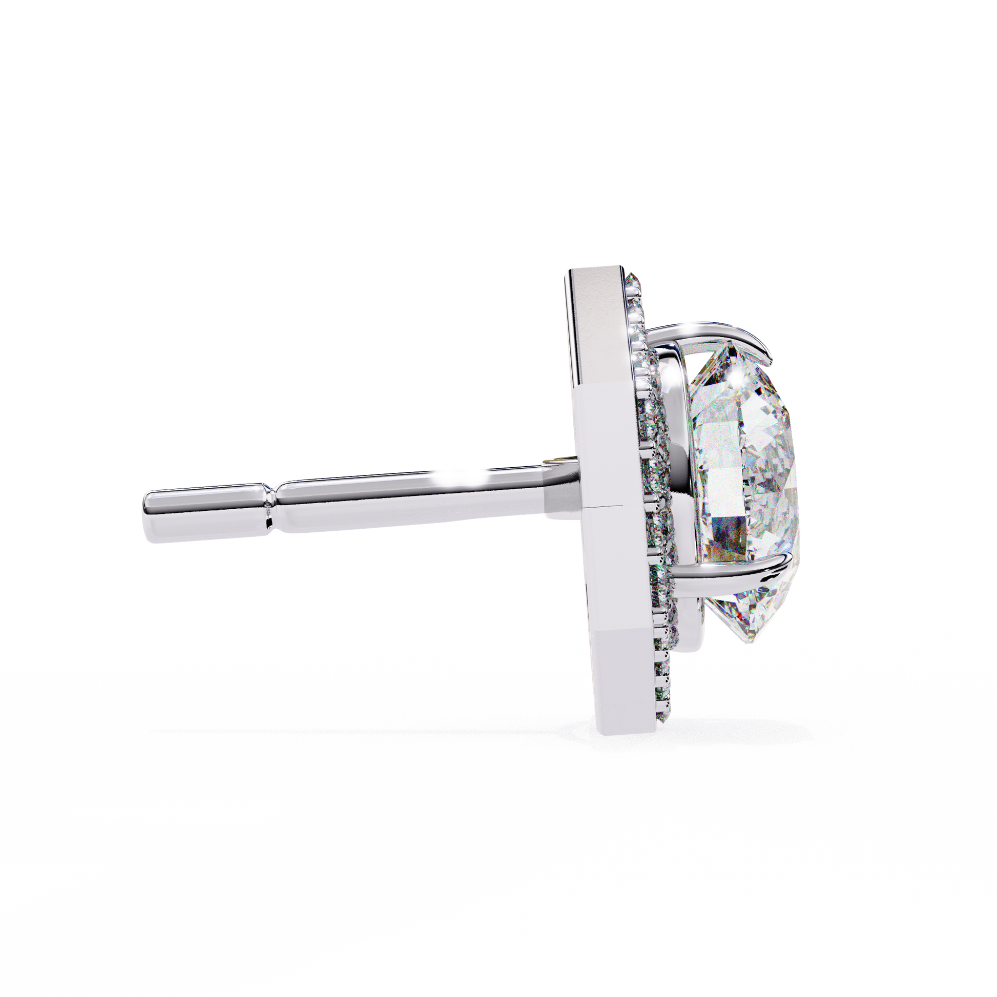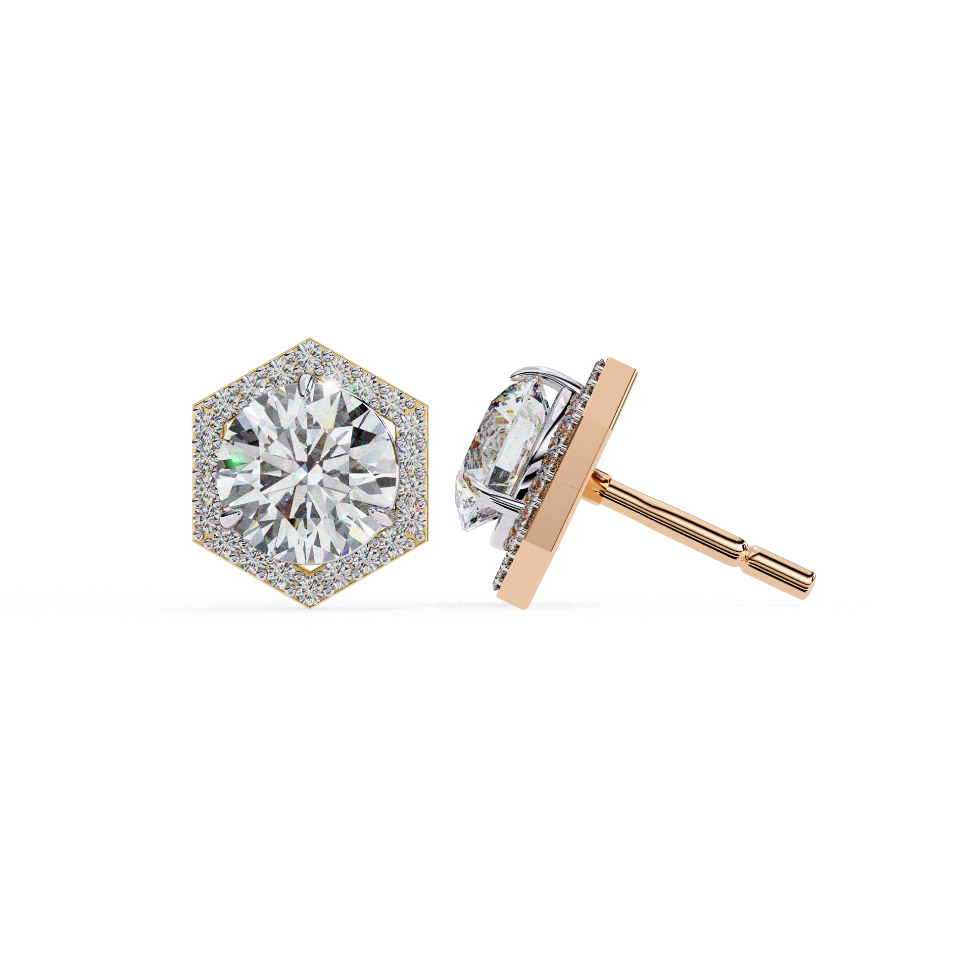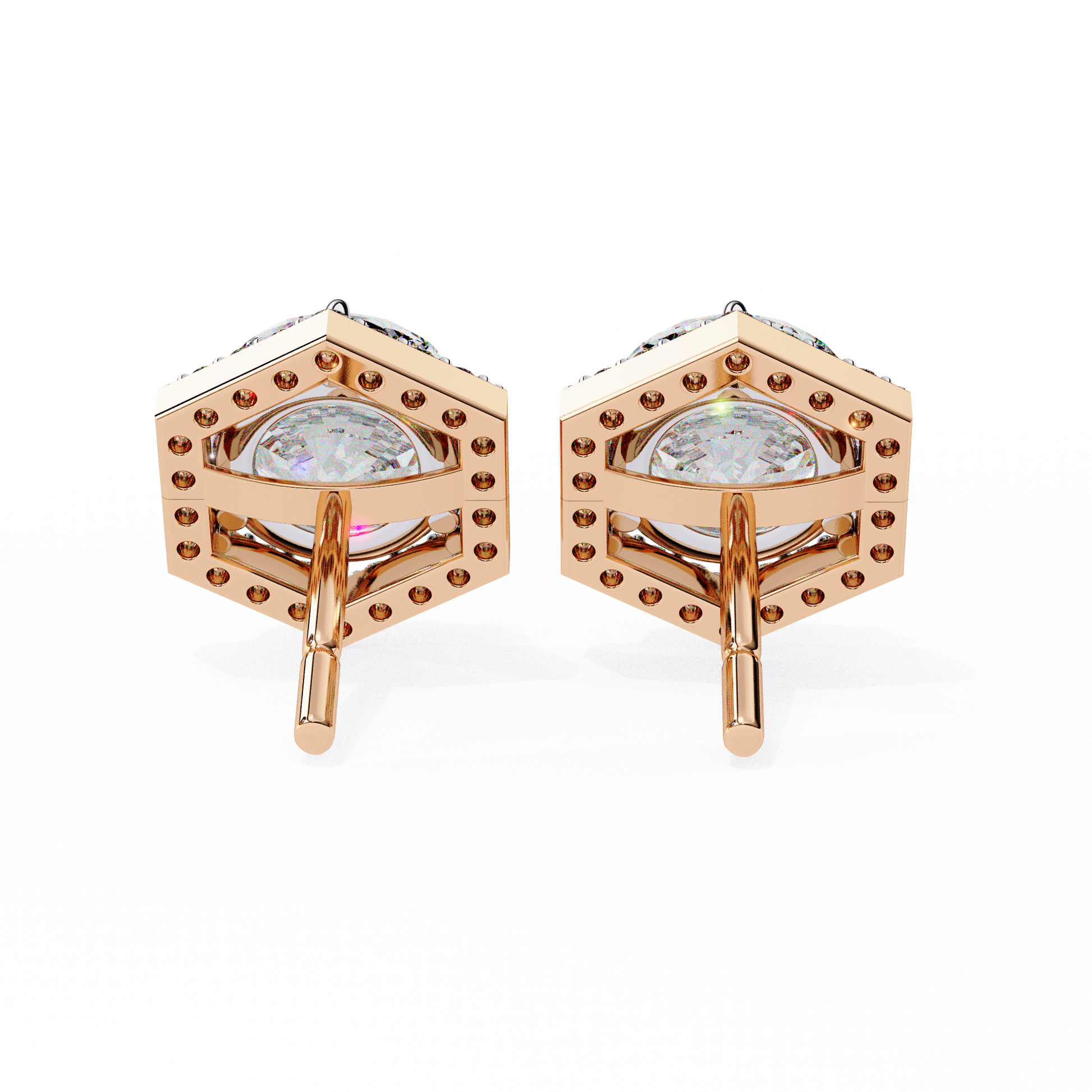 2.10 Carat Round Cut Halo Diamond Stud Earrings With Hexa Frame - Everyday Fine Jewelry