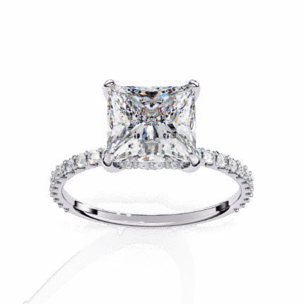 2.16 Carat Princess Cut Hidden Halo Diamond Engagement Ring – Elegant Bridal Jewelry