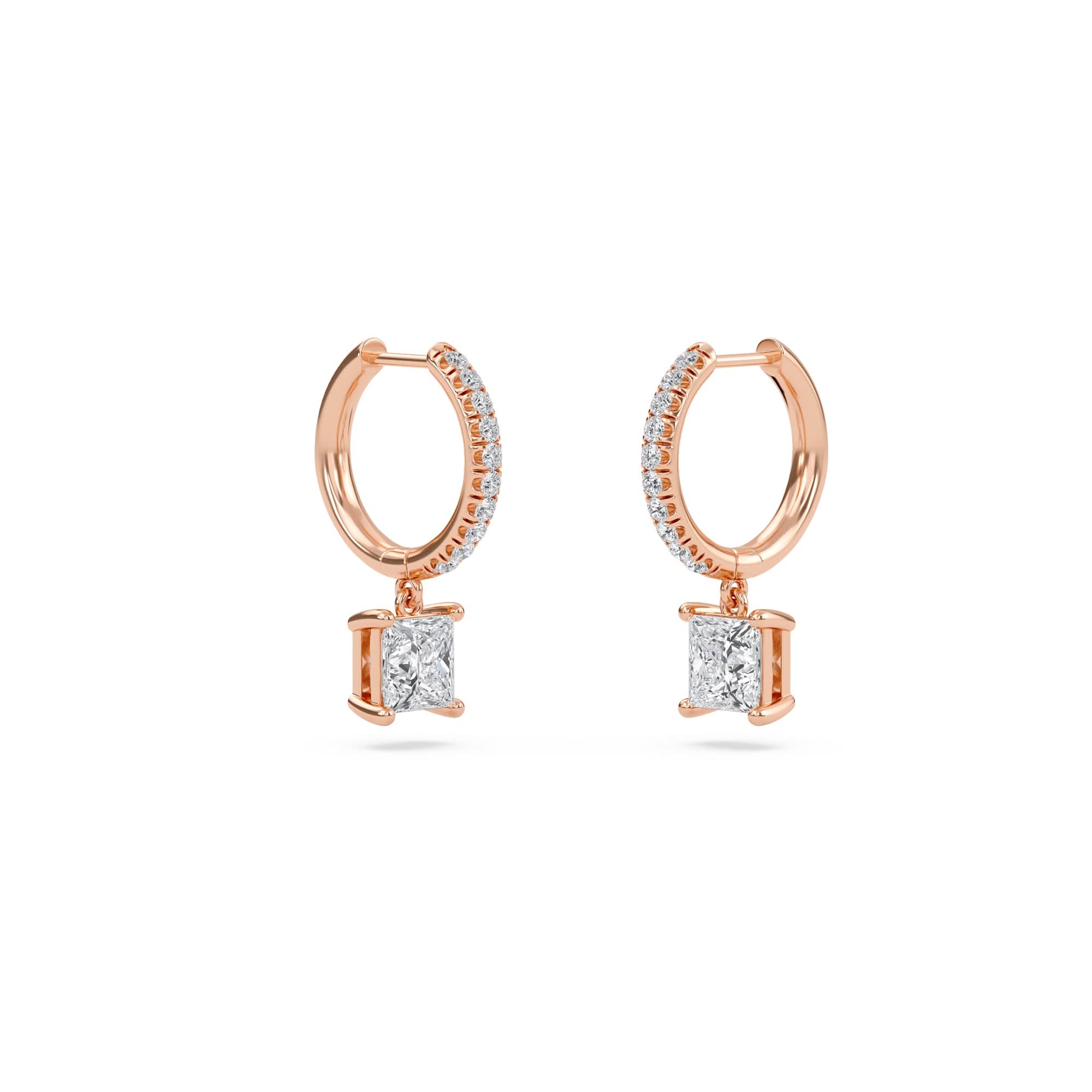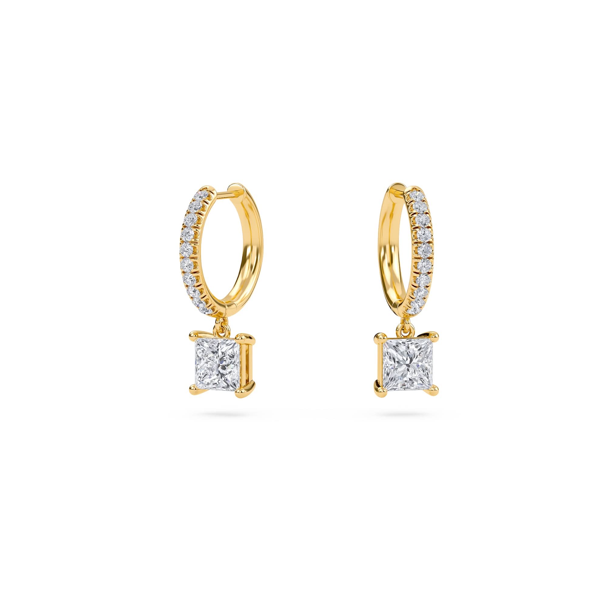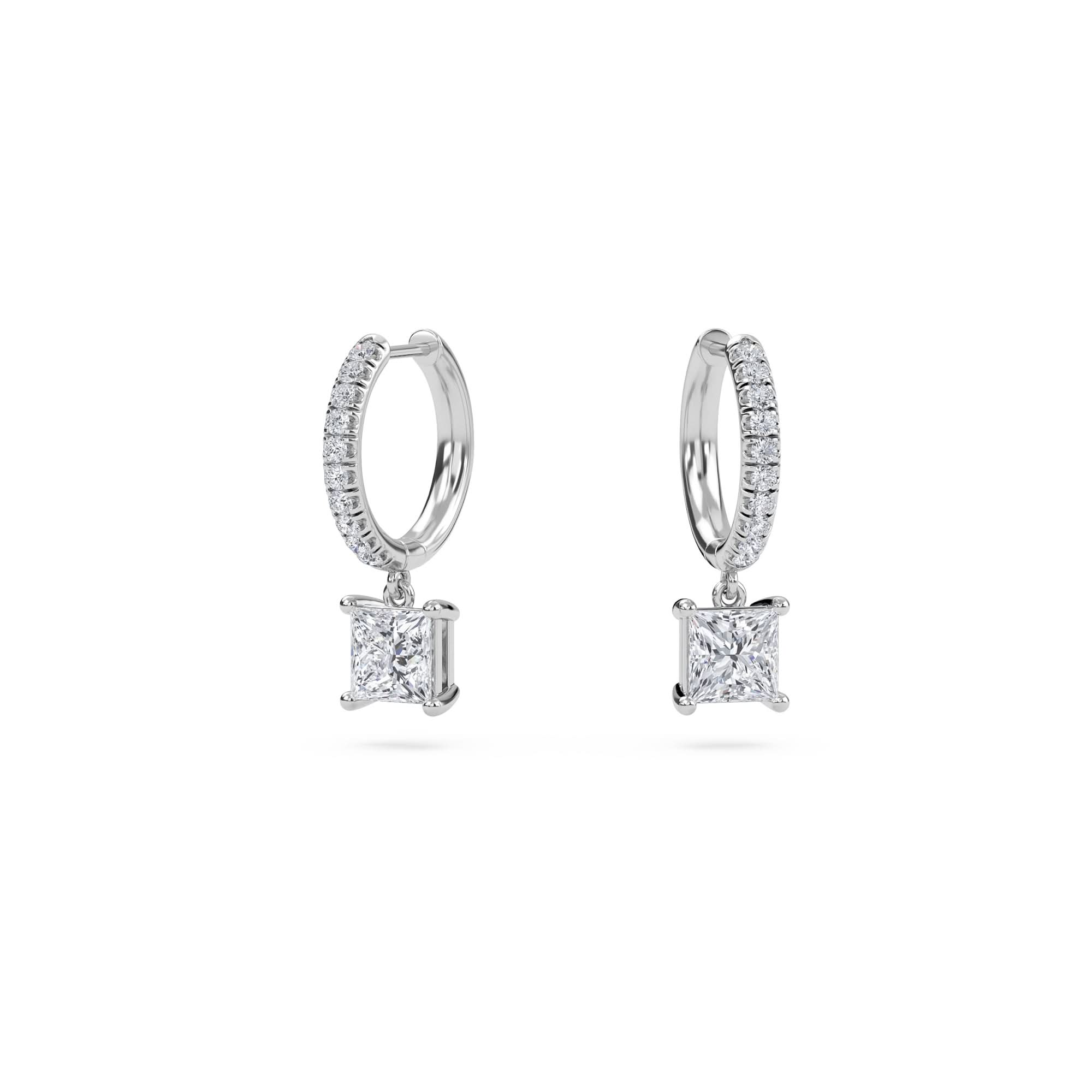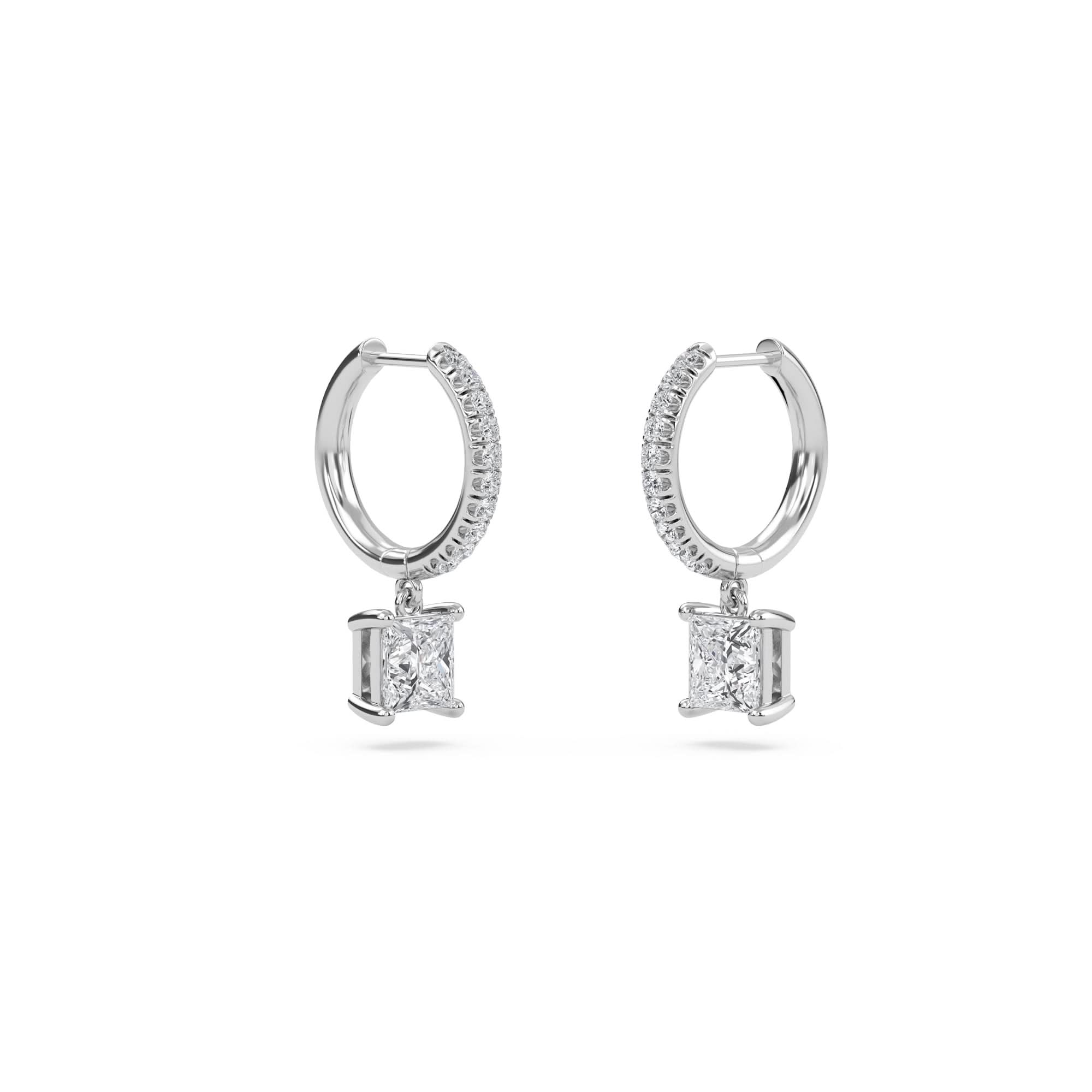 1.40 Carat Princess Cut Diamond Drop Hoop Earrings with Round Side Stones – Elegant Fine Jewelry