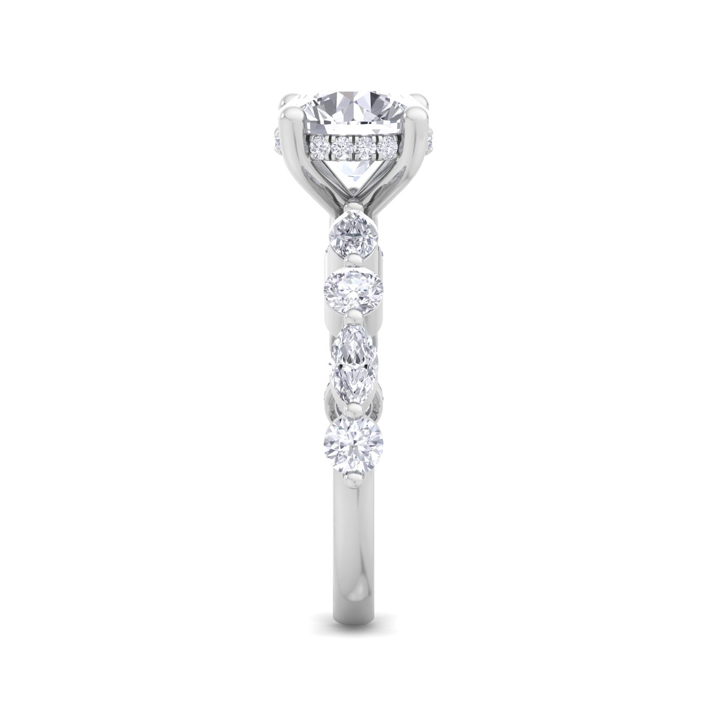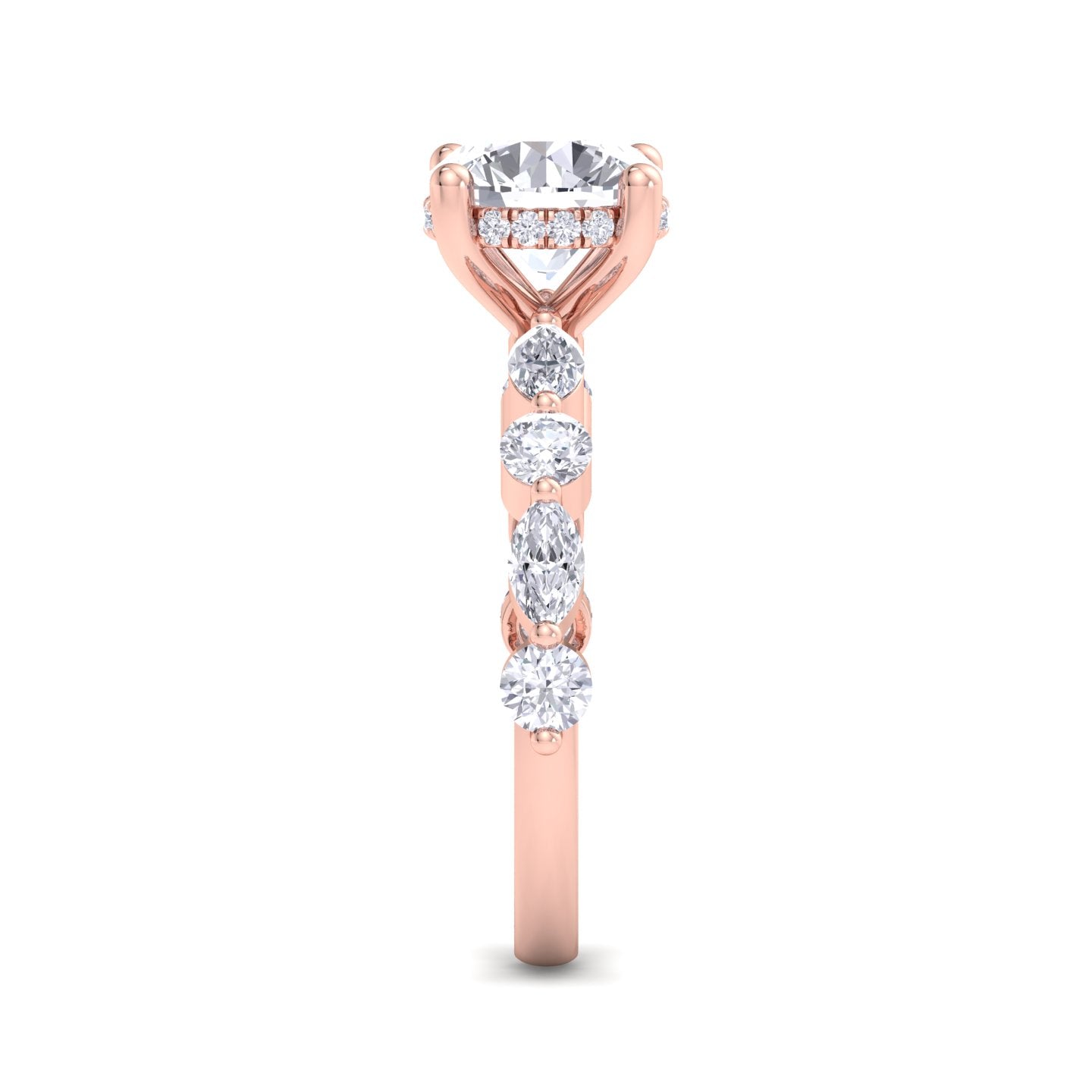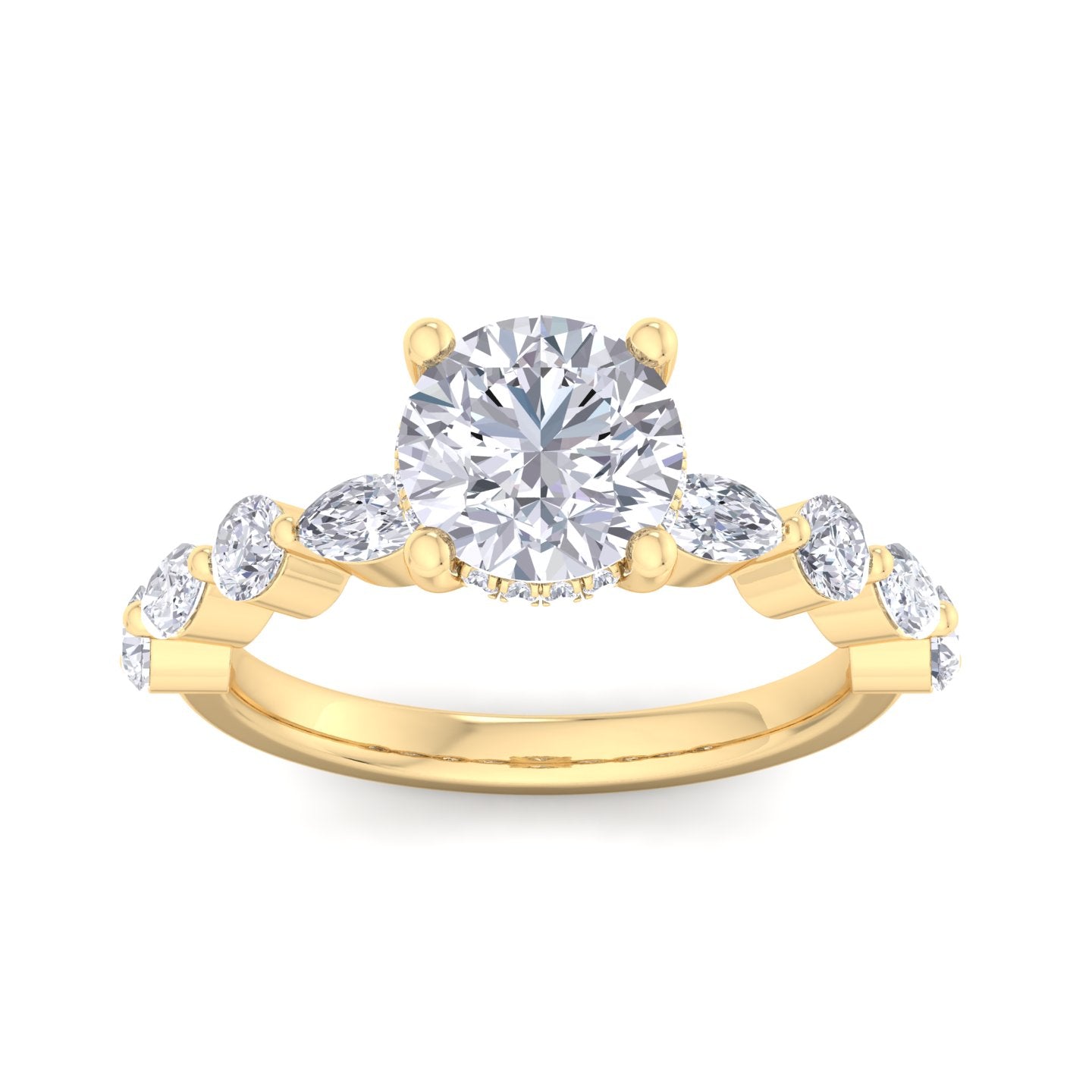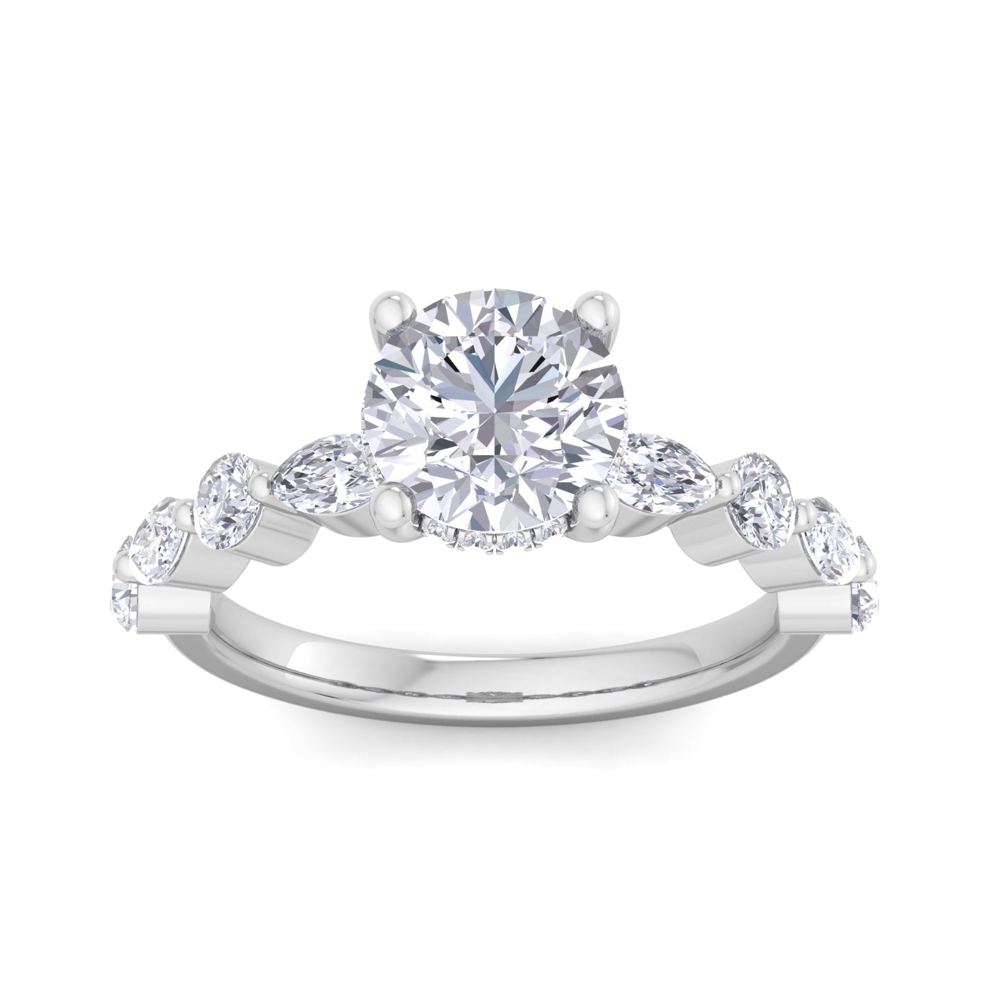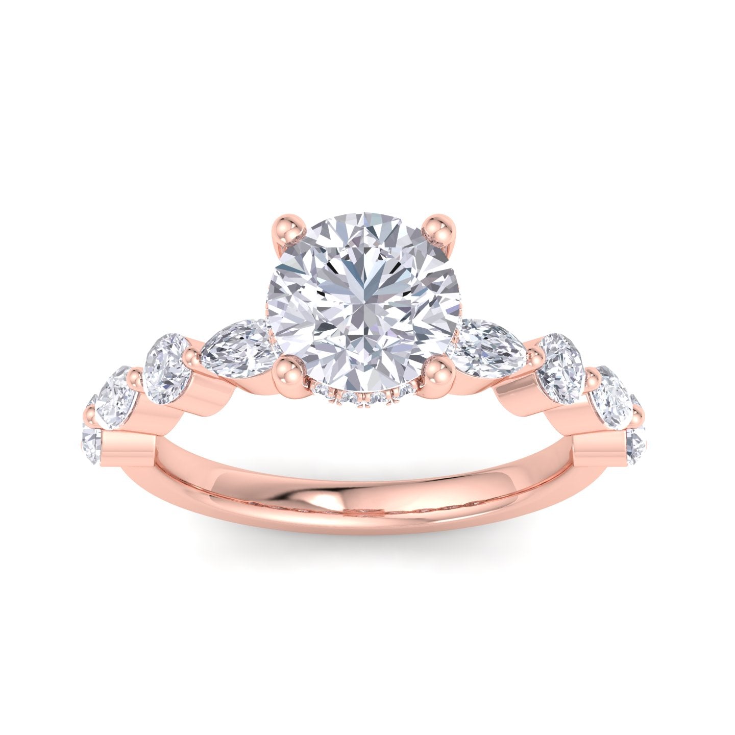 We offer complete customization – choose your diamond shape, quality, size, metal color, engraving, or even add a hidden halo or initials.
