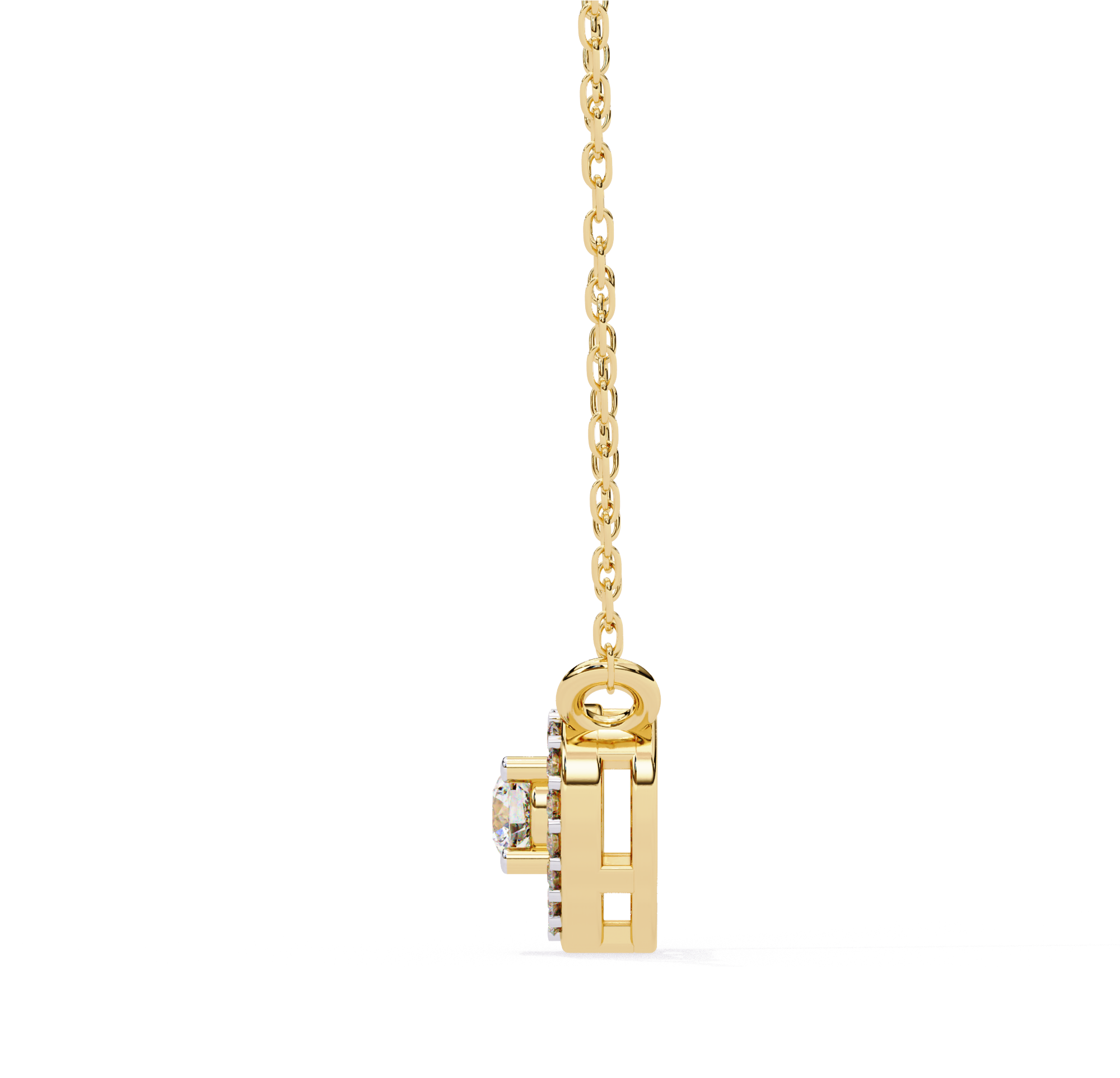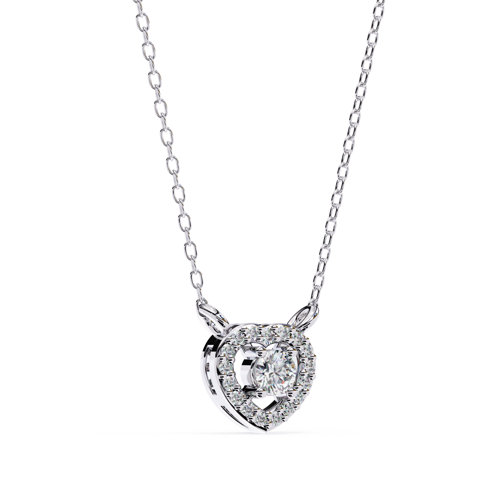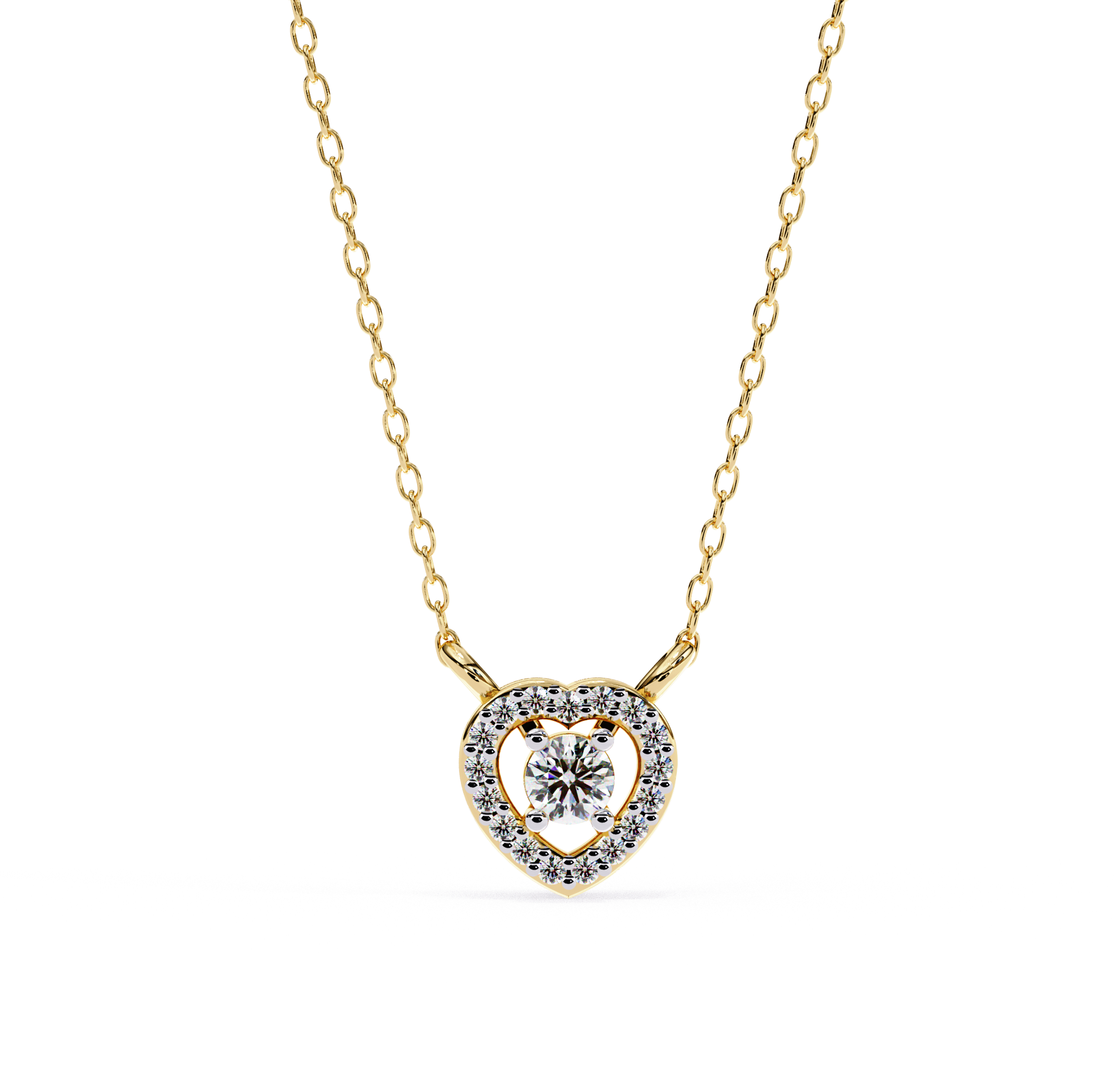Round Brilliant Cut Diamond Halo Pendant with Heart Frame – Modern Fine Jewelry
